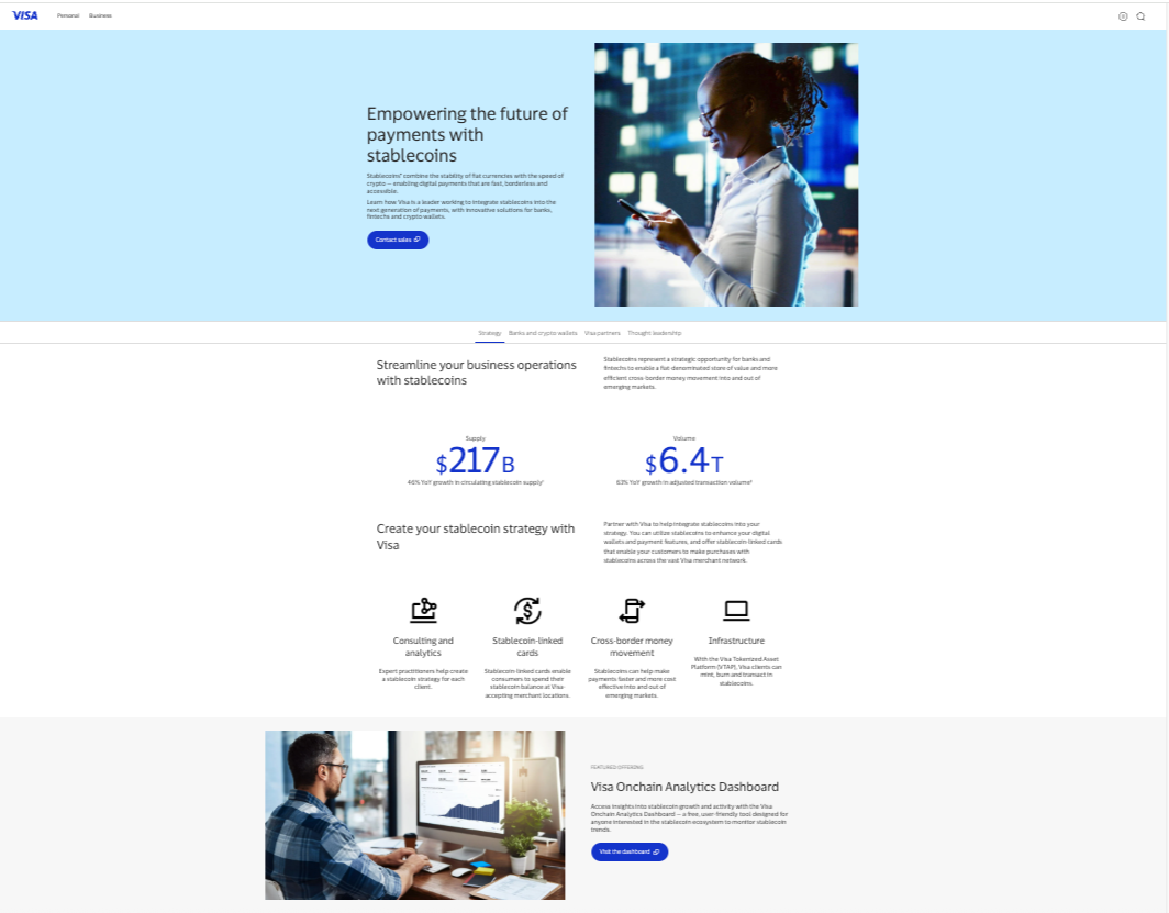 Visa stablecoin landing page